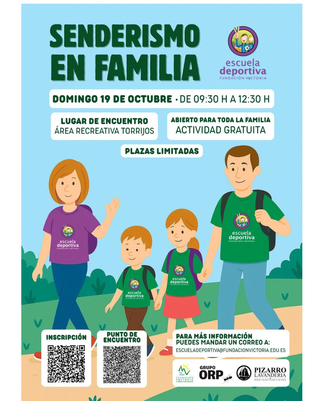 La Escuela Deportiva Fundación Victoria celebrará el próximo domingo 19 de octubre la quinta edición del Senderismo en Familia, una jornada gratuita dirigida a toda la comunidad educativa de Fundación Victoria que desee disfrutar de un día de naturaleza, convivencia y actividad física al aire libre.